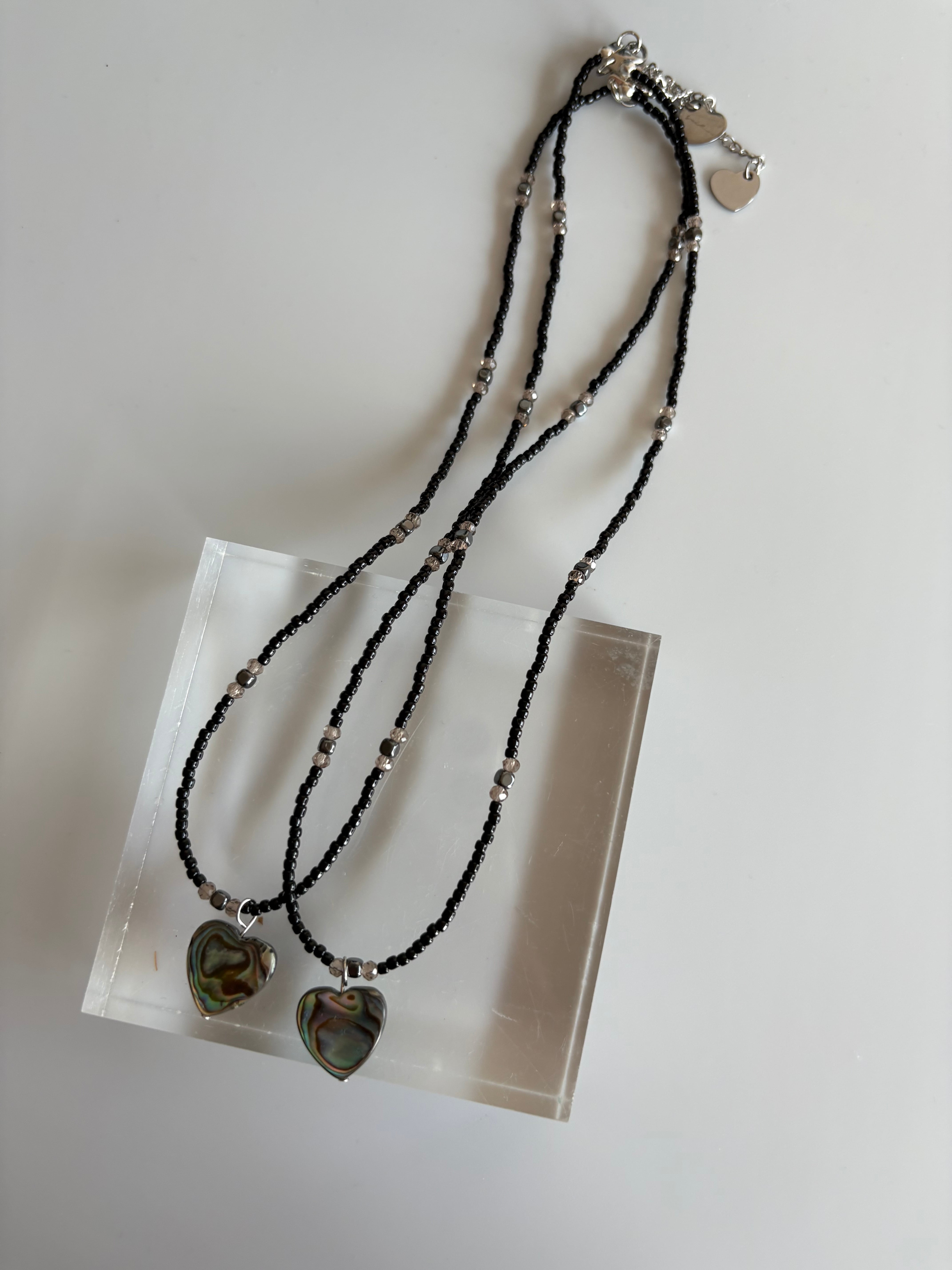 アバロンシェルのハートをあしらったブラックのビーズネックレス♡