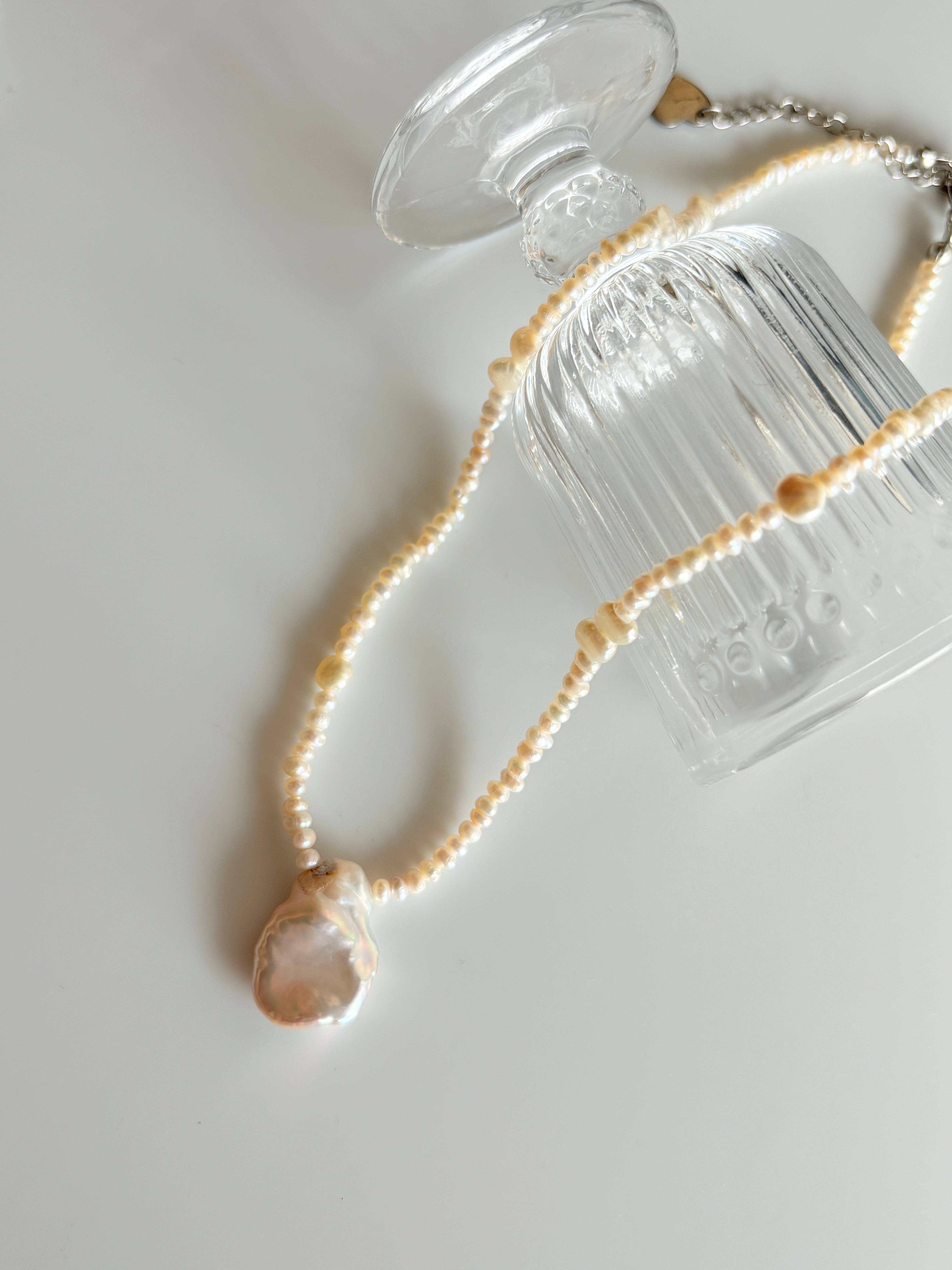 贅沢に淡水パールとケシパールのみを使ったネックレスです。